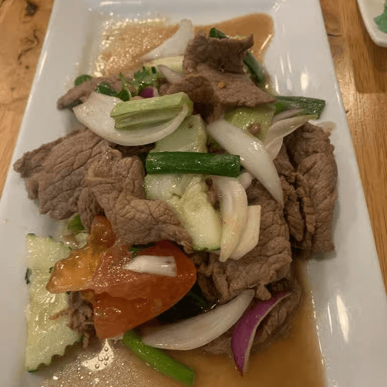 Grilled angus beef mixed with spicy lime juice, shallot, tomato, celery, scallion, bed of mix salad