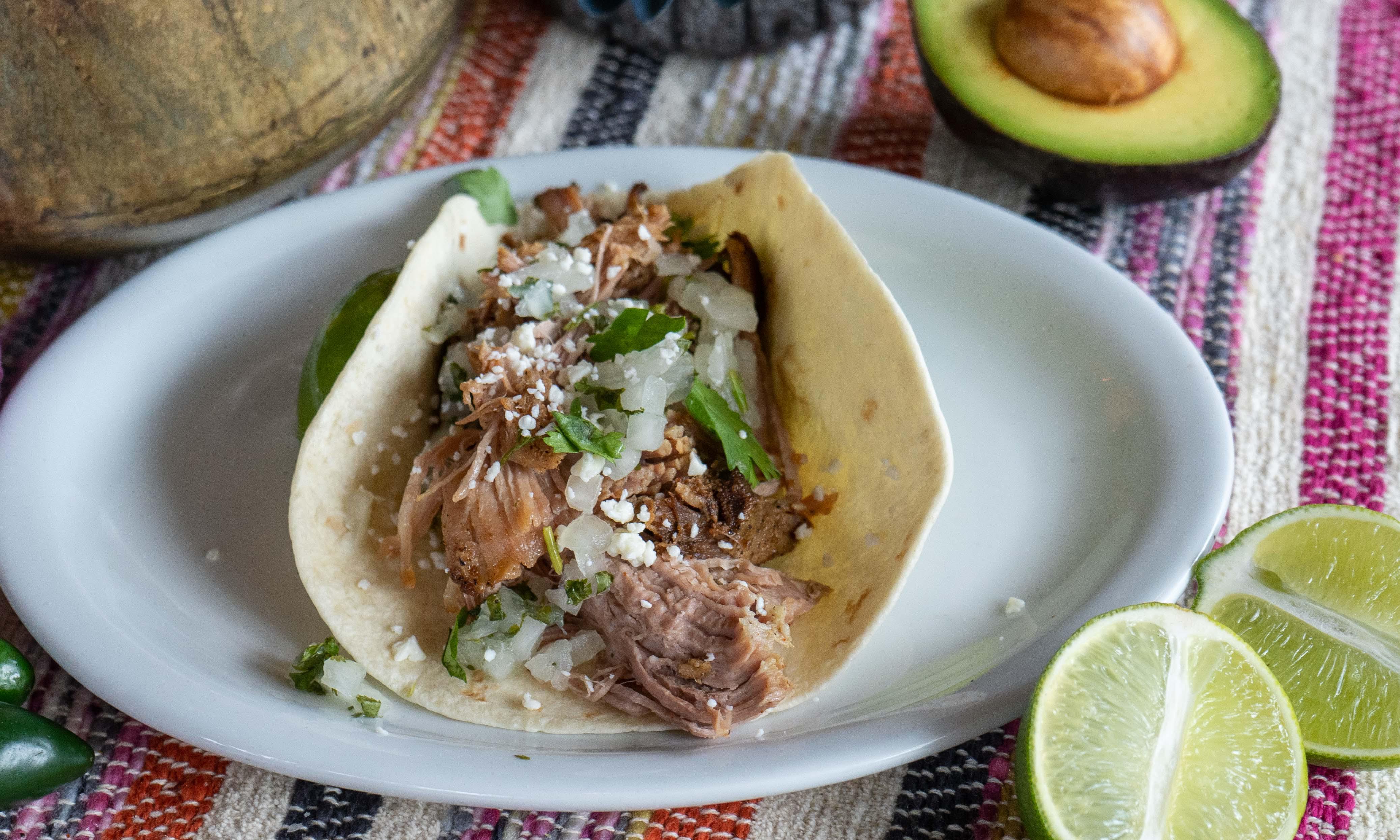Slow braised pork salsa verde and red pickled onions