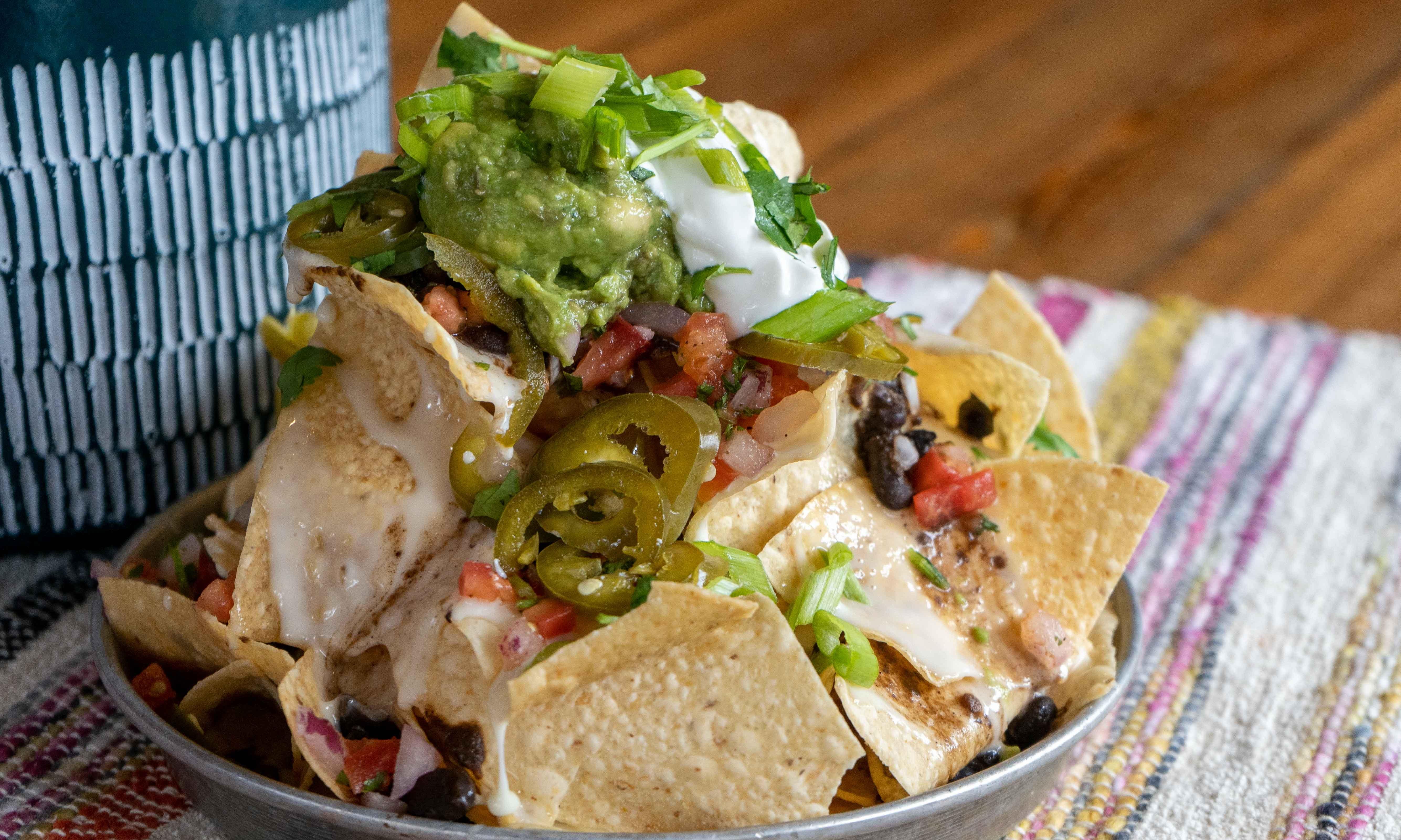 Tortilla chips, queso, corn & black beans salsa, pico de gallo, jalapenos, chipotle mayo and cilantro.