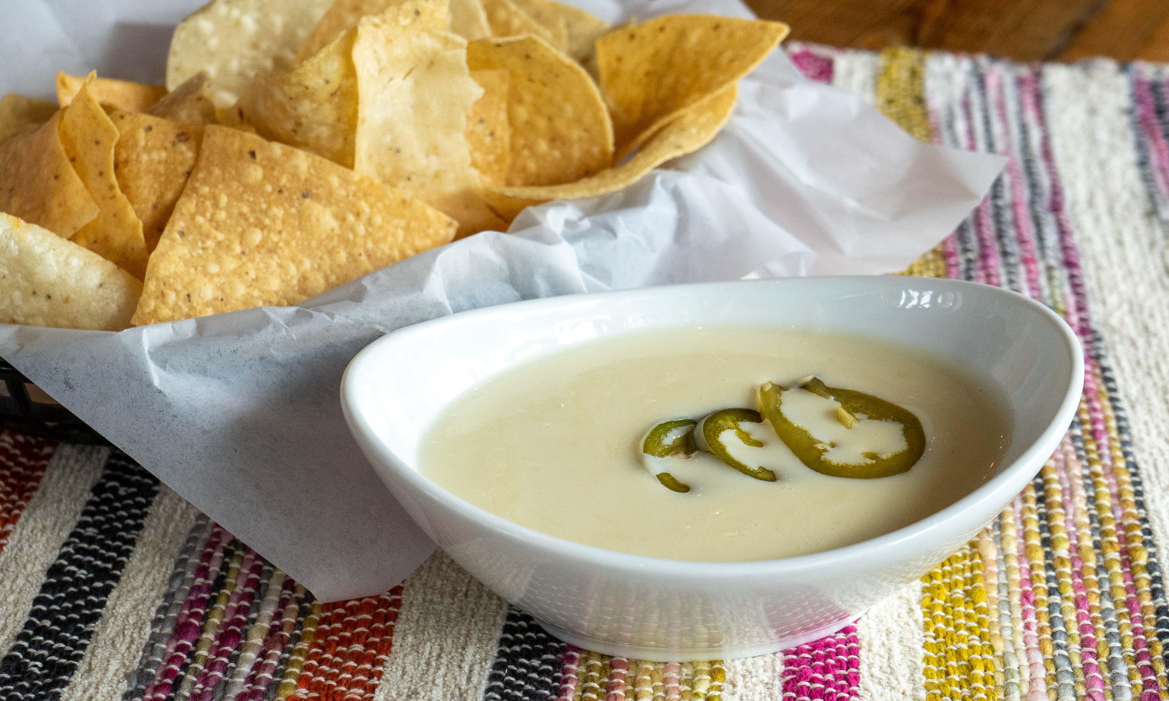 Creamy queso topped with roasted corn, cotija cheese, baja rub and jalapeños.